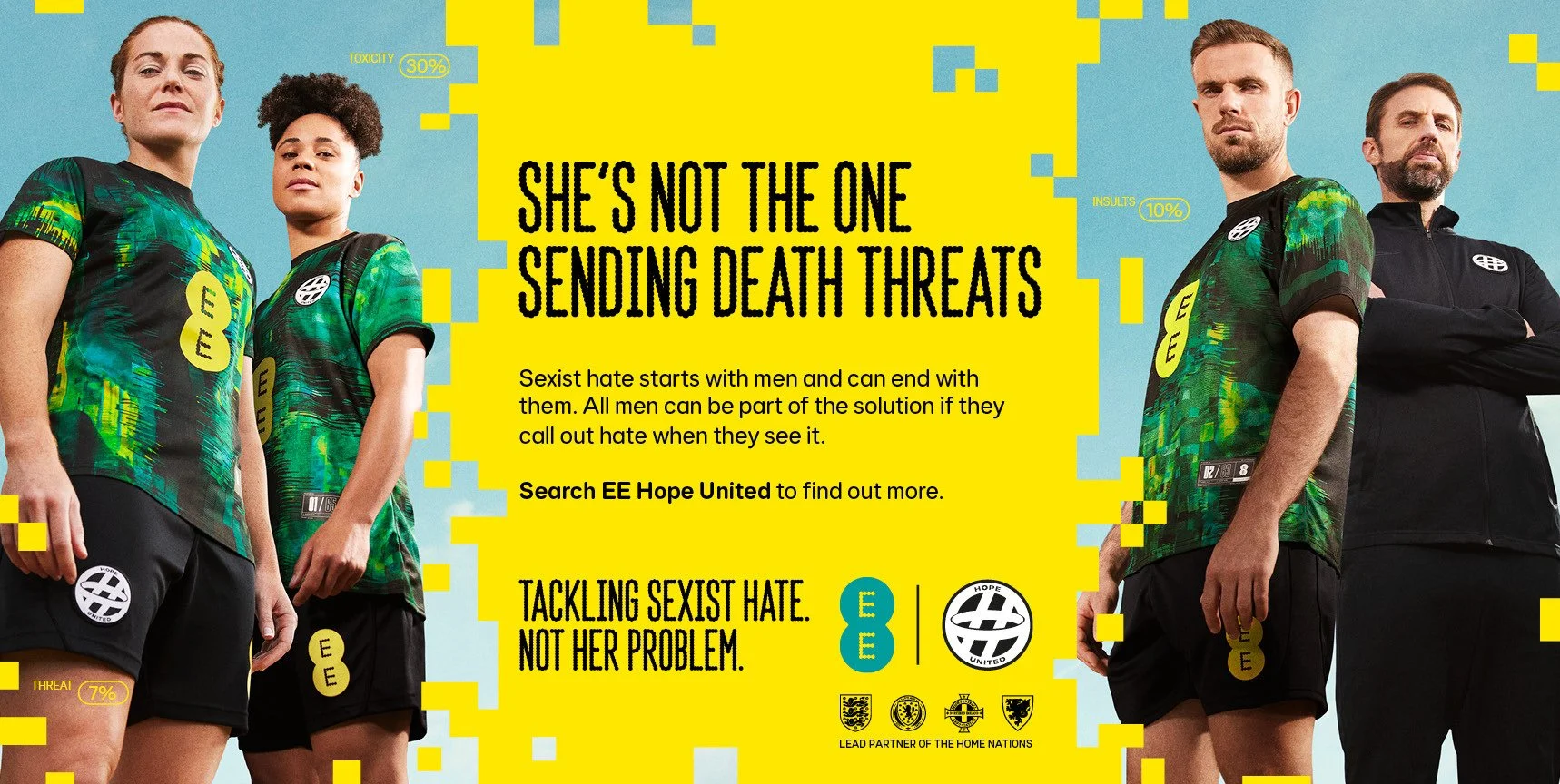 EE inherited the home nations football sponsorship from BT for 2022 and wanted to use the moment of the Women’s Euros to bring Hope United to the fore, tackling online hate once more.